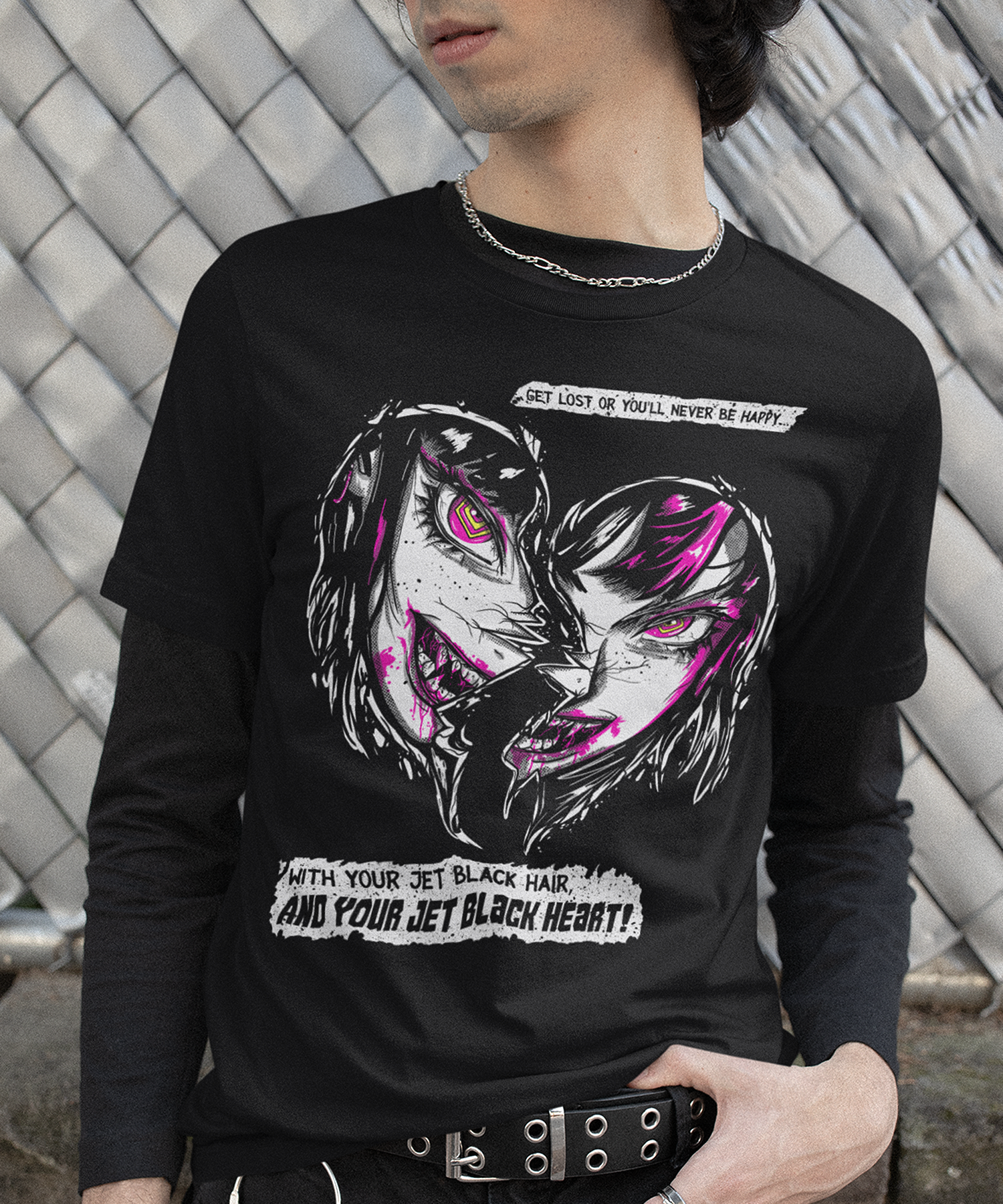 Get lost or you'll never be happy with your jet black hair, and your jet black heart! It's made of 100% ring-spun cotton and is soft and comfy.