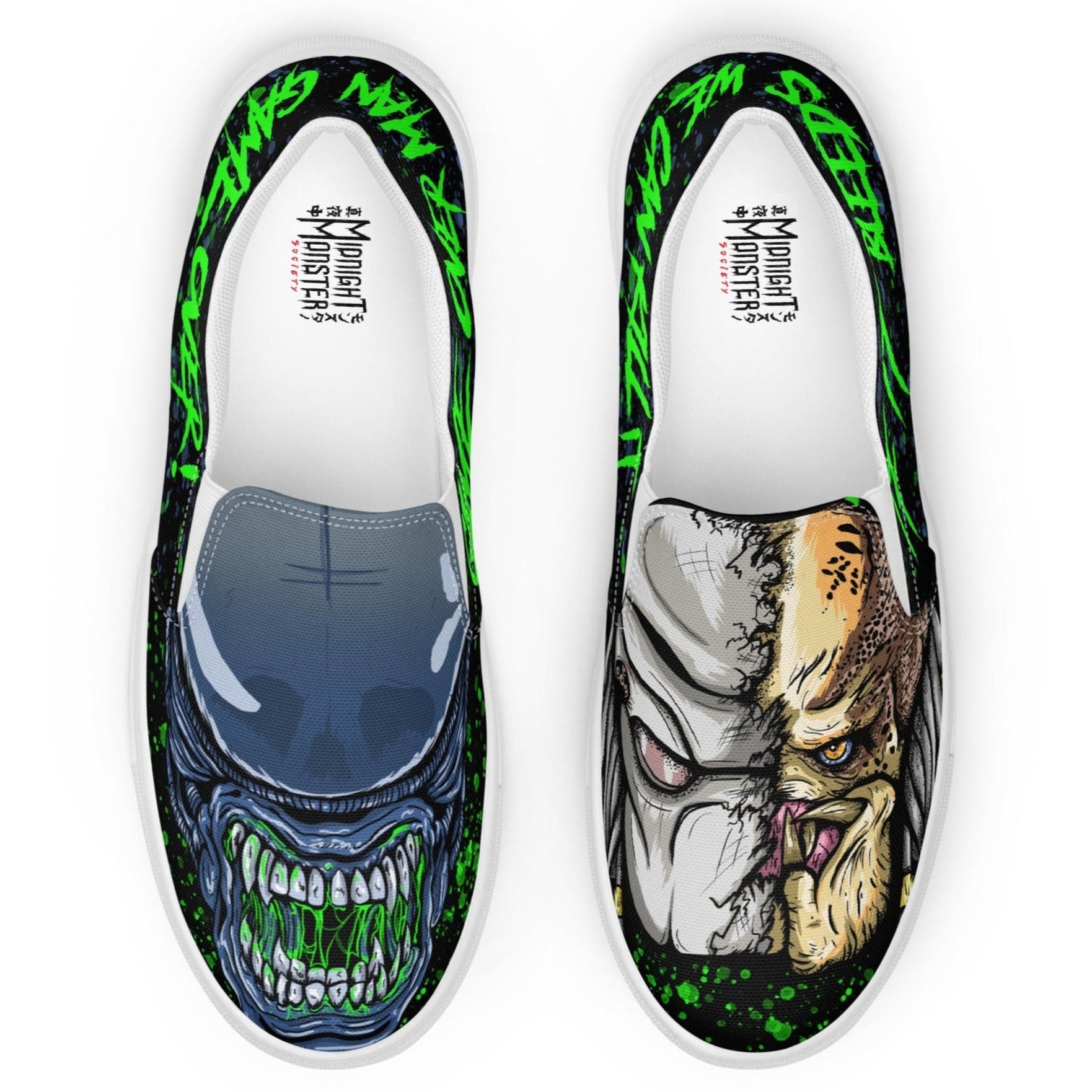 Introducing our Alien vs. Predator Slip-on Shoes – where sci-fi showdown meets effortless style. Step into the battle zone with these extraordinary kicks that pay homage to two of the galaxy's fiercest rivals. Equipped with removable soft insoles and rubber outsoles, it’s also easy to adjust them for a better fit.