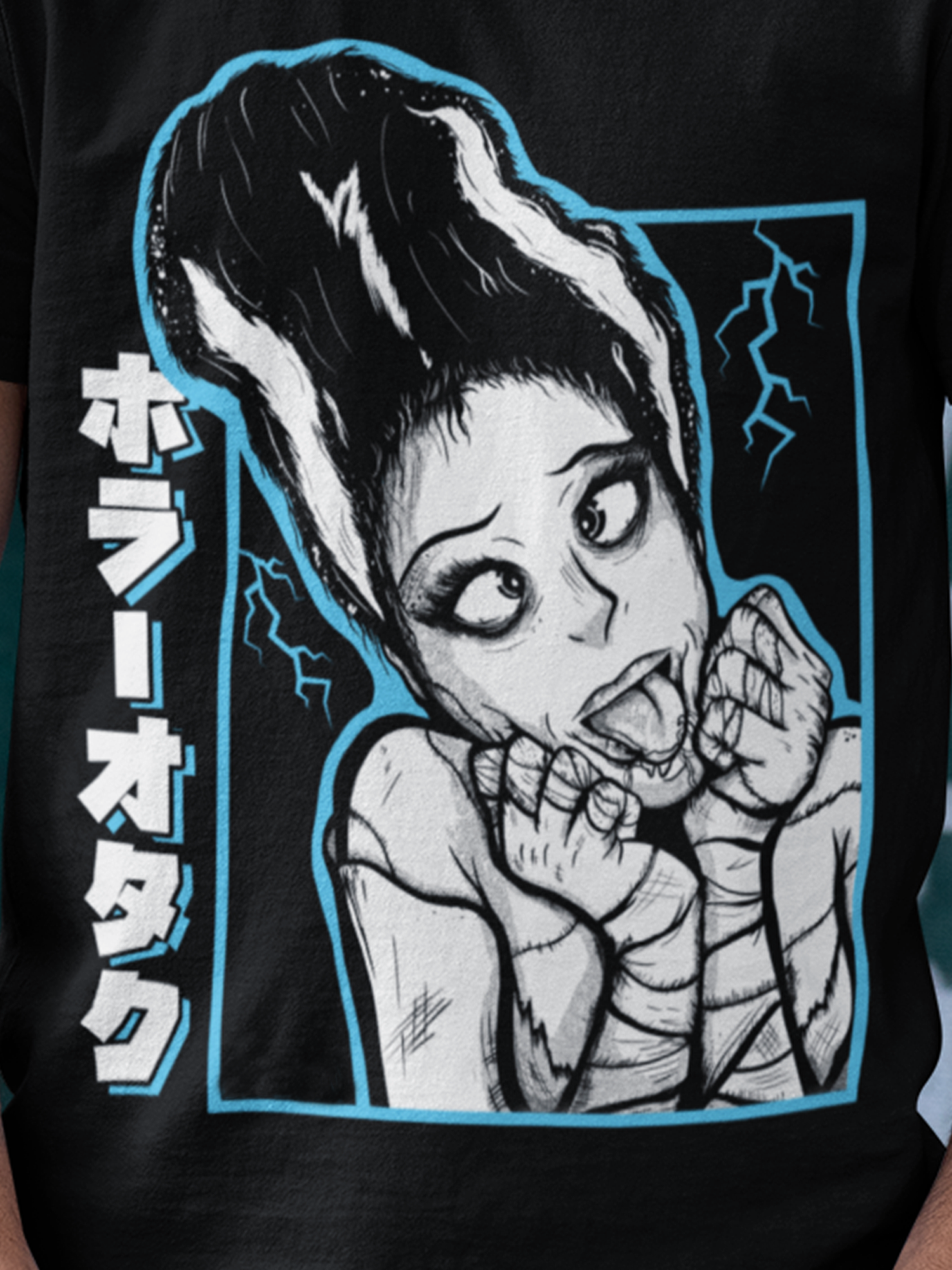 The Waifu of Frankenstein. Makes for a great staple t-shirt that complements any outfit. It's made of 100% ring-spun cotton and is soft and comfy. The double stitching on the neckline and sleeves add more durability to what is sure to be a favorite!